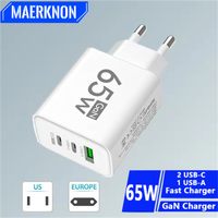 GaN PD Fast Charger with Type C and USB Ports 65W 3 in 1 Quick Charging Adapter for iPhone 16 15 Samsung Huawei Xiaomi POCO VIVO $1.81