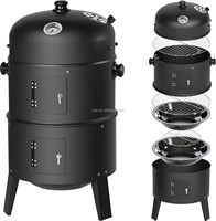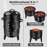 3-in-1 Charcoal BBQ Smoker Vertical Outdoor Grill with Built-in Thermometer Multi-Level Cooking for Camping & Backyard Parties