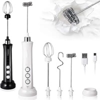 Electric Milk Frother 2 In 1 Rechargeable Blender Stainless Steel 3 Speeds Coffee Mixer Egg Beater Handheld Foam Maker Tools