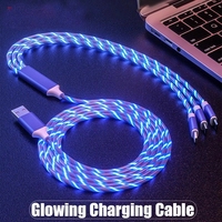Glowing LED 3 IN 1 Cable For Samsung Xiaomi iPhone Flowing Streamer Light Fast Charger USB C Cord Luminous Type C Cable $1.89