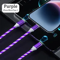 3 in 1 LED Flowing Light Glowing Charging Cable Micro USB Type C Cable Fast Charging for iPhone Huawei Xiaomi Redmi Phone Cable $2.35