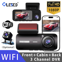 3 Lens Car Driving Recorder Dash Cam 1080p HD Night Vision 2.0 Inch Hidden Three-Record Car Camera with 64G Memory Card – 3 Lens with WIFI