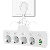 EU Plug Power Strip Multiple Socket with Individual switch 4 AC Outlets 4 USB, Multiple Plugs USB Wall Socket Surge Protector $17.85