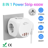 4000W EU Plug Power Strip Cube with 4 Outlets 4 USB Ports European Multiple socket adapter Wall charge ON/OFF Switch for home $18.90