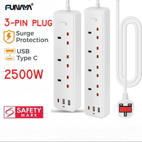 FUNAYA UK MK SG 2/3 /4/5 Way Power Extension Outlets Multi Plug with 2 USB + Type-C Charger Power Strip 180cm Extension Cord $24.71
