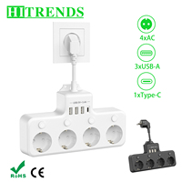 EU Plug Power Strip with 2 USB and 2 Type-C Ports.2,3 or 4 Slots Electrical Socket 8CM Extension Power Cord Multicontact Outlet $15.19