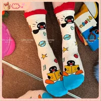 New 3/4 Pairs Pingu Medium Length Socks Women Cartoon Autumn Winter Casual Breathable Soft Fashionable Kawaii Girls Socks Gifts