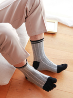 3 Pairs Five-finger Socks Spring and Summer Thin Medium Tube Crew Men’s Pure Cotton Breathable Cotton Business Sub Toe Socks