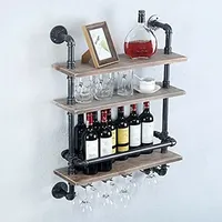 %a Industrial Pipe Shelf Wine Rack Wall Mounted with Stem Glass Holder 3-Tiers Rustic Floating Bar Shelves Wine Shelf Bar Cabi $100.90