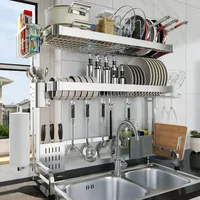 Customizable Multi Organizer Cabinet Steel Over The Sink Dish Drying Rack 3-Tier Utensil Cup