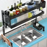 Over the Sink Shelf Cutting Board Cutlery Holder Dish Drying Drainer Rack for Kitchen 2-tier 3 Tier Stainless Steel Metal Black