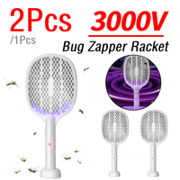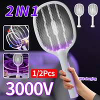 1/2Pcs 3000V Bug Zapper Racket 2 in 1 Fly Swatter with USB Rechargeable Mosquito Killer Lamp Pest Control Handheld Electric Fly