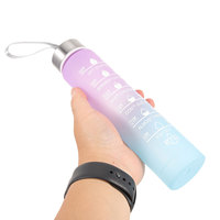PC 1 Liter Sports Water Bottle Leak Proof Large Capacity Colorful Plastic Cup Portable Handle Retractable Straw