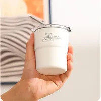 300ml Cups With Straw Portable Stainless Steel Tumbler Coffee Cup With Lid Heat Resistant Straw Cup Drinking Water