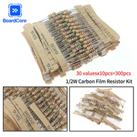 300PCS 30 Values Film Resistors Package 1/2W 5% 10R-1M Carbon Film Metal Resistors Assortment Kit Set