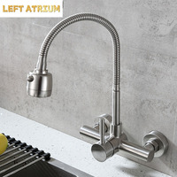 Wall Mounted Stream Sprayer Kitchen Faucet Single Handle Dual Holes SUS304 Stainless Steel Flexible Hose Kitchen Mixer Taps 6032
