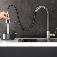 Double Function Water Kitchen Pull-out Sink Faucet Gray 304 Stainless Steel Hot And Cold Water Single-hole Telescopic Sink Tap