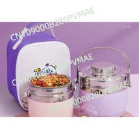Portable Thermos 304 stainless steel insulated lunch box leakproof sealed bucket student lunch box multi-layer Round bento box