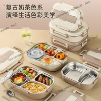 304 stainless steel insulated box for students to go to work portable sealed multi-layer lunch box divided grid round bento box