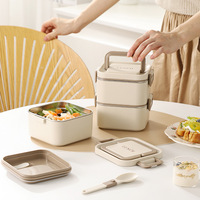 Multi-layer Lunch Container With Spoon Large Capacity 304 Stainless Steel Insulated Lunch Box For Kids Students Microwave Safe