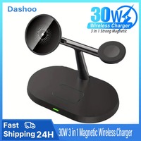 30W Folding Magnetic 3-in-1 Wireless Charger For iPhone 16 15 14 13 12 iWatch 10-2 AirPods 4 Pro3/2 Travel Fast Charging Station $13.04