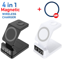 4 In 1 30W Magnetic Wireless Charger Stand Alarm Clock Fast Charging Station For Iphone 15 14 13 12 Apple Watch 8 7 Airprods Pro $15.03