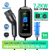 [EU Direct] 32A Type 2 EV Home Wall Mount Car Charging Station Adjustable Portable EV Charger Level 2 Home EVSE Electric Car Charger with Blue CEE Plug