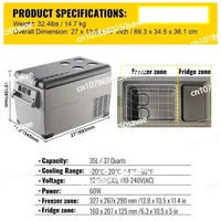 Vevor 1.23Cuft Compressor Portable 35L Small Refrigerator Cooler Freezer Home And Car Refrigerator Fridge $358.95
