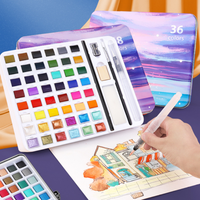 18/24/36 Colors Portable Travel Solid Pigment Portable Watercolor Paints set With Watercolor Brush Pen For Painting Art Supplies