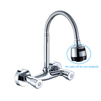 Wall Mounted Kitchen Faucet Wall Kitchen Mixers Kitchen Sink Cold hot Water Tap 360 Degree Swivel Flexible Hose Double Hole
