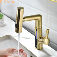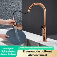3 Modes Kitchen Faucet Rose Gold 360 Swivel Pull Down Sink Faucets LED Temperature Display High-arc Hot Cold Mixer Tap