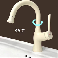 Solid Brass Pull-Out Vanity Faucet – Dual Temp, Adj Ht, 360 Swivel, Cream/GM Gray – Lead-Free, Easy Inst, Dual Spray – Bath Sin
