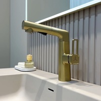 Brush Gold Faucet Bathroom Pull Out Hot Cold Mixer Tap Wash Basin Sink Deck Mount 360 Degree Swivel Single Hole Brass Facuet Tap