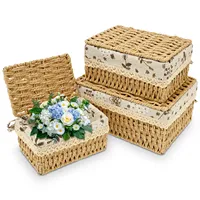 3Pcs Bohemian Imitation Rattan Storage Basket Rattan Woven Organizer Bin with Lid for Desktop Clothes & Sundries Organization