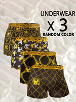 random 3pcs Men’s Greek Pattern Boxer Briefs Black Golden Soft Stretchy Breathable Daily Wear Underwear $5.82