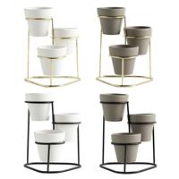 3Pcs Succulent Pot Ceramic Flower Holder Bamboo Stand