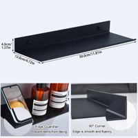 3Pcs Small Floating Shelves Decor Display Wall Shelf Aluminum Wall Mounted Matt Black for Kitchen Shower Room Bedroom Device