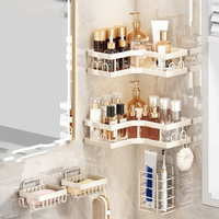 1/2/3pcs Plastic Bathroom Storage Rack Shampoo Holder Adhensive Shower Caddy Shelves Storage No Drill Shelf Corner Towel Shelves
