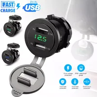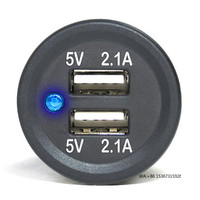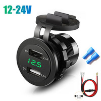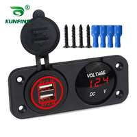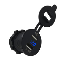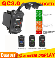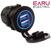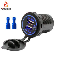 4.2A Waterproof Car 2 Port Dual USB Charger Socket Power Outlet with LED Voltmeter for 12-24V Car Boat Marine ATV Motorcycle – Blue