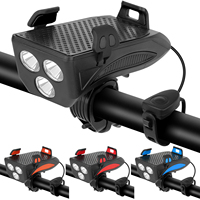 4 In 1 Bicycle Front Light USB Chargeable Phone Holder Bike Horn Cycling Flashlight MTB Power Bank Headlight Bike Accessories – Black