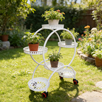 Heart Shaped 4 Tier Flower Plant Stand Holder Shelf 6 Trays Iron Rolling Wheels for Indoor Outdoor Garden Home Decor