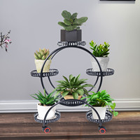 4-Tier Metal Plant Stand with 4 Wheels 6 Trays Iron Flower Display Shelf 7.5kg Capacity for Garden Balcony Flower Pots Rack