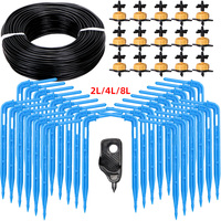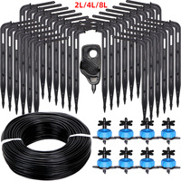 8L Garden 4/2-way 3/5mm Hose Automatic Watering Drip Irrigation System Kit Elbow Emitter Potted Plant Home Bonsai Greenhouse $1.74
