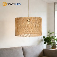 JOYINLED 40cm Rattan Pendant Lamp Natural Rattan Wicker E27 Chandeliers Hand-Woven Lampshades Lighting Fixture Hanging Light