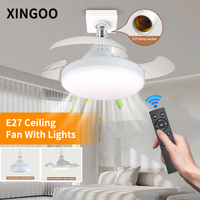 Socket Small Ceiling Fan Multifunctional Ceiling Light 40cm Remote Control Silent Invisible Fan Blade Living Room Office Study