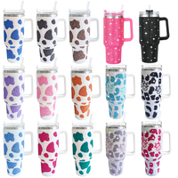 40oz Bling Diamond Thermos Bottle With Handle Tumbler Coffee Insulated Cup Stainless Steel Vacuum Flasks Keep Cold Cow Print Mug