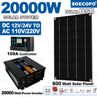 SOECOPO 20000W Complete Solar System Set 600W Panel 12V 24V To 110V 220V Inverter(2 sockets) 100A Controller for Home Camping $208.96