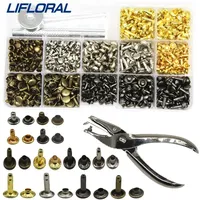 Leather Rivets Double Cap Rivet Tubular Metal Studs with Punch Pliers Kit for DIY Leather Craft Repairs Decoration with Tool $8.94