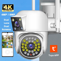4K 8MP Tuya Dual Lens Wifi Camera Outdoor Security 4MP HD Dual Screen PTZ Camera AI Auto Tracking CCTV Audio Video Surveillance