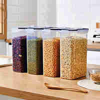 4Pcs Cereal Storage Box Plastic Rice Container Food Sealed Jar Cans Kitchen Grain Dried Fruit Snacks Storage Box – S